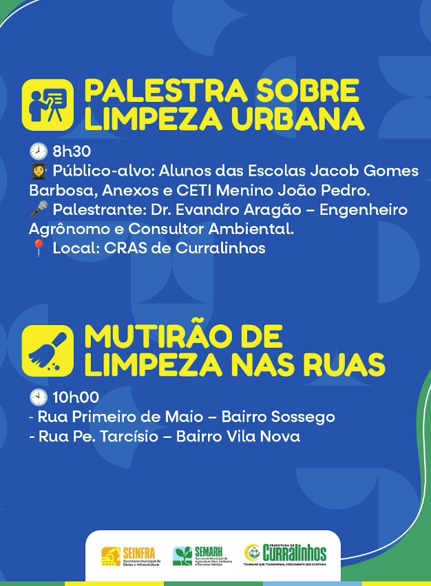 A gestão municipal convida toda a população a participar, levando energia e disposição para, juntos, construir uma Curralinhos mais limpa, saudável e sustentável.