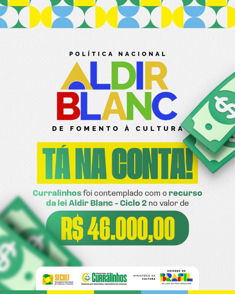 O município de Curralinhos recebeu o repasse de R$ 46.000,00 por meio da Lei Aldir Blanc – Ciclo 2, uma importante iniciativa do Governo Federal voltada ao fortalecimento do setor cultural em todo o país.