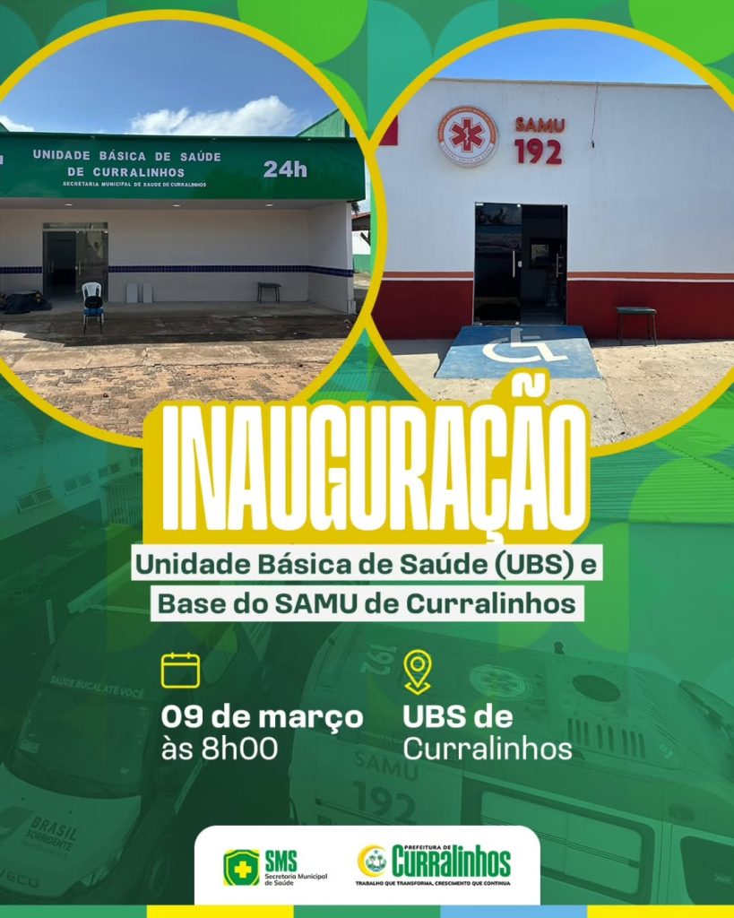 A Prefeitura Municipal de Curralinhos convida toda a população para participar de um momento importante para a saúde do município: a inauguração da nova Unidade Básica de Saúde (UBS) e da Base do Serviço de Atendimento Móvel de Urgência (SAMU).