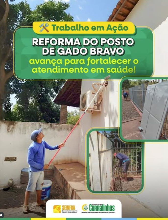 A Prefeitura de Curralinhos, por meio da Secretaria Municipal de Obras e Infraestrutura (SEINFRA), está realizando a reforma do Posto de Saúde da comunidade Gado Bravo. As obras já estão em andamento e visam oferecer mais conforto, segurança e dignidade tanto para os profissionais de saúde quanto para a população atendida no local. A reestruturação do espaço é mais uma ação concreta que demonstra o cuidado da gestão municipal com quem mais precisa, garantindo um serviço de saúde mais eficiente, próximo e humanizado.