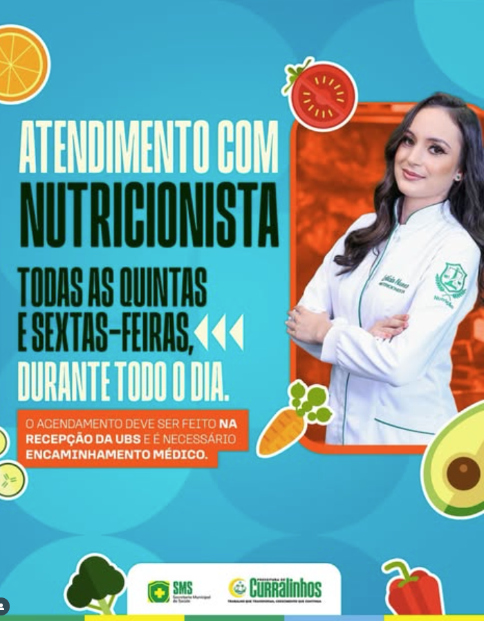 Mais saúde e cuidado para a nossa população! A partir da próxima quinta-feira, 11 de setembro, a Unidade Básica de Saúde (UBS) da Sede de Curralinhos contará com o atendimento de nutricionista todas as quintas e sextas-feiras, durante todo o dia.
